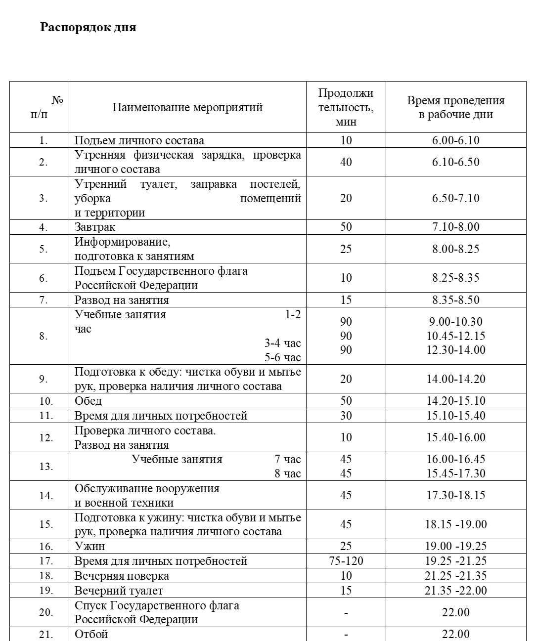 Программа прохождения курсов НВП «Звезда»